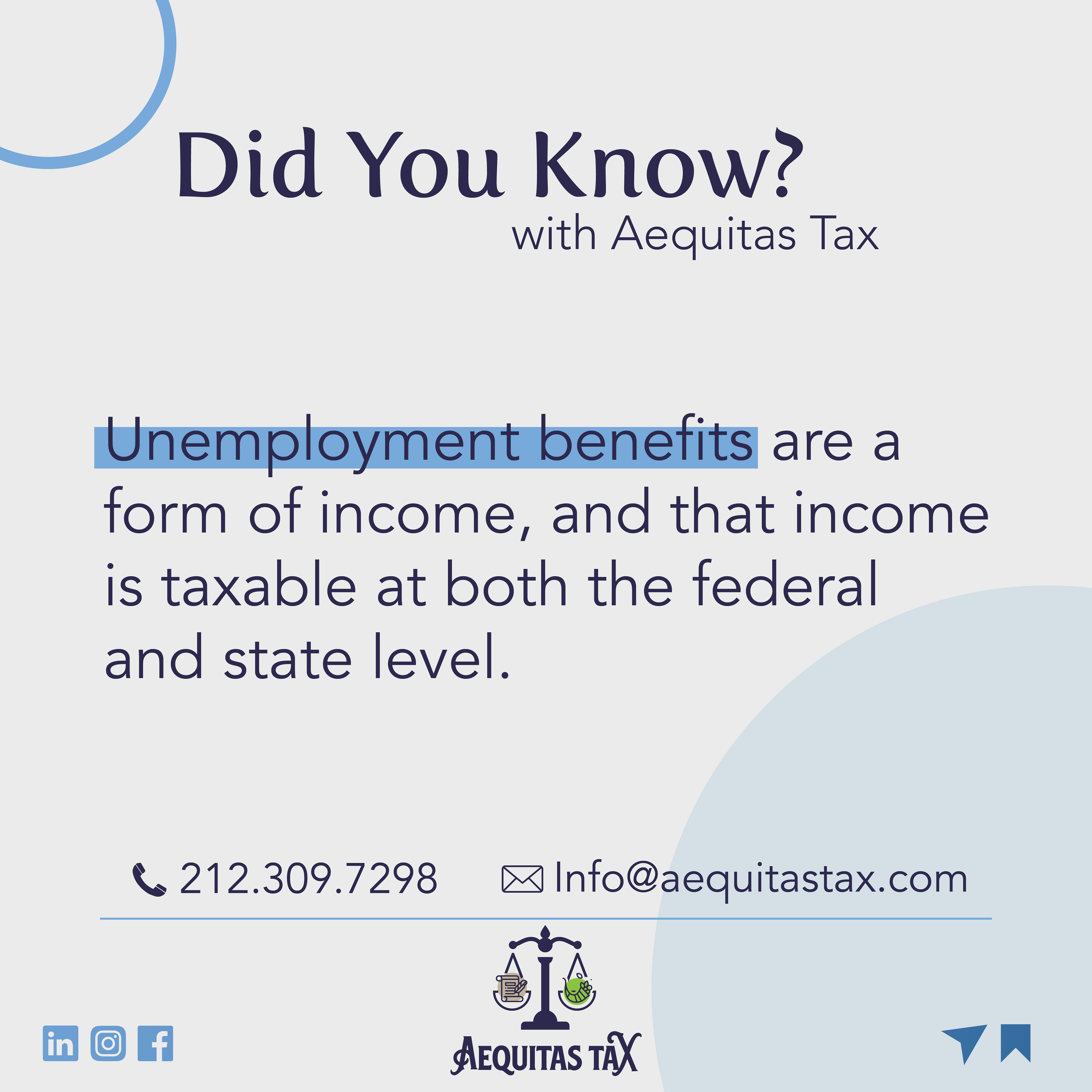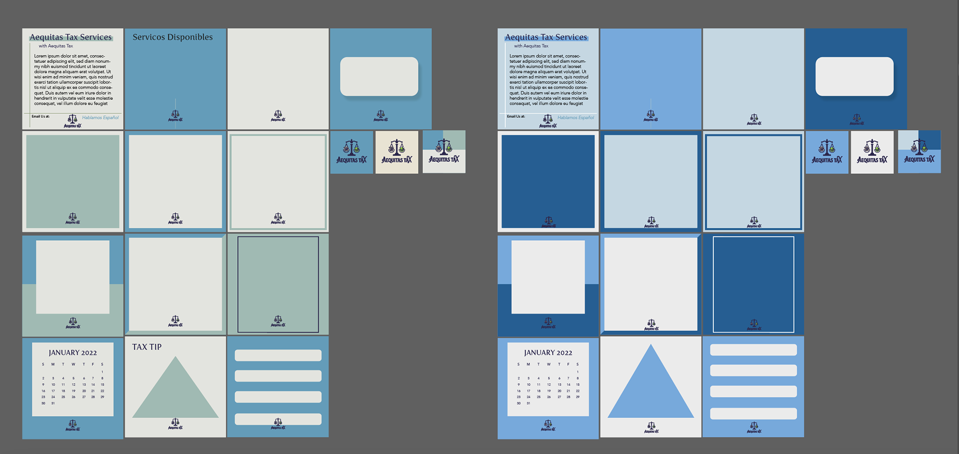 Aequitas Tax is a small tax preparation business who was looking for a rebrand across their social media channels. I assisted them with creating new graphics for their social media as well as come with a clearer brand design. I came up with a harmonious color scheme, simple and clean design where the content is legible when scrolling. I created content that is engaging and informative for their viewers as well.